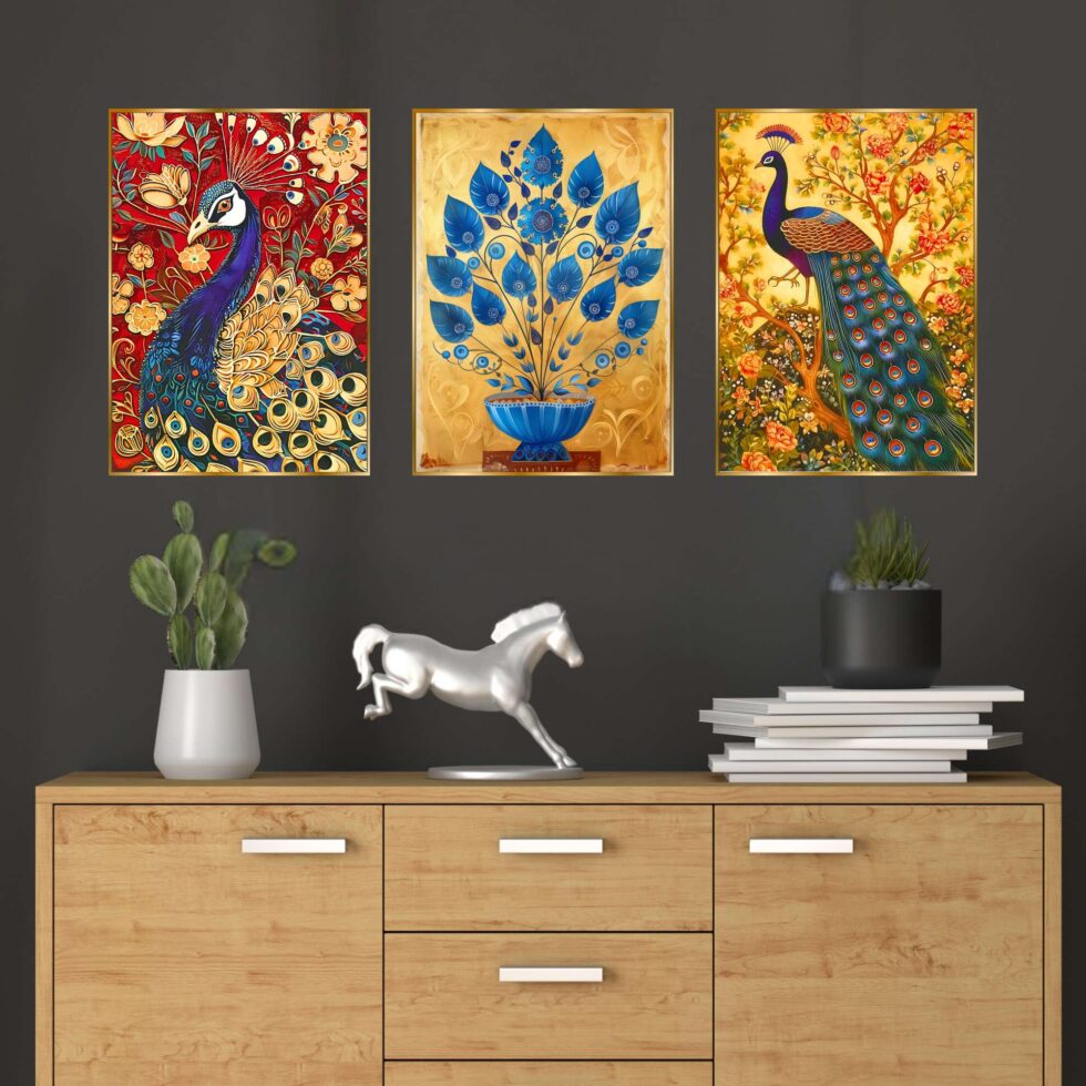 wall paintings, designed to elevate any room with their vibrant traditional charm. Perfect for a variety of settings, these intricate pieces are ideal for wall decor, whether you’re seeking artwork for your living room or bedroom. Our collection includes bold and large wall paintings that create a striking focal point, especially as big wall paintings for the living room. paintings are perfect for home decoration, seamlessly fitting into any space as wall art for living rooms or framed wall paintings for bedrooms. Whether you choose wall paintings with frames for the living room or bedroom, these pieces add an elegant, cohesive touch to your decor. Beyond living areas, these paintings also make beautiful kitchen wall decor and versatile wall hanging options. Enhance your living room wall decor with framed wall art that complements any style. Choose from various formats, including wall paintings golden frame,allowing you to customize your space with ease. Each painting blends traditional and abstract styles, offering both framed wall paintings and wall art decor that fit effortlessly into any room. Explore the beauty of art and bring a touch of culture and sophistication to your home with these exquisite wall paintings for decoration.