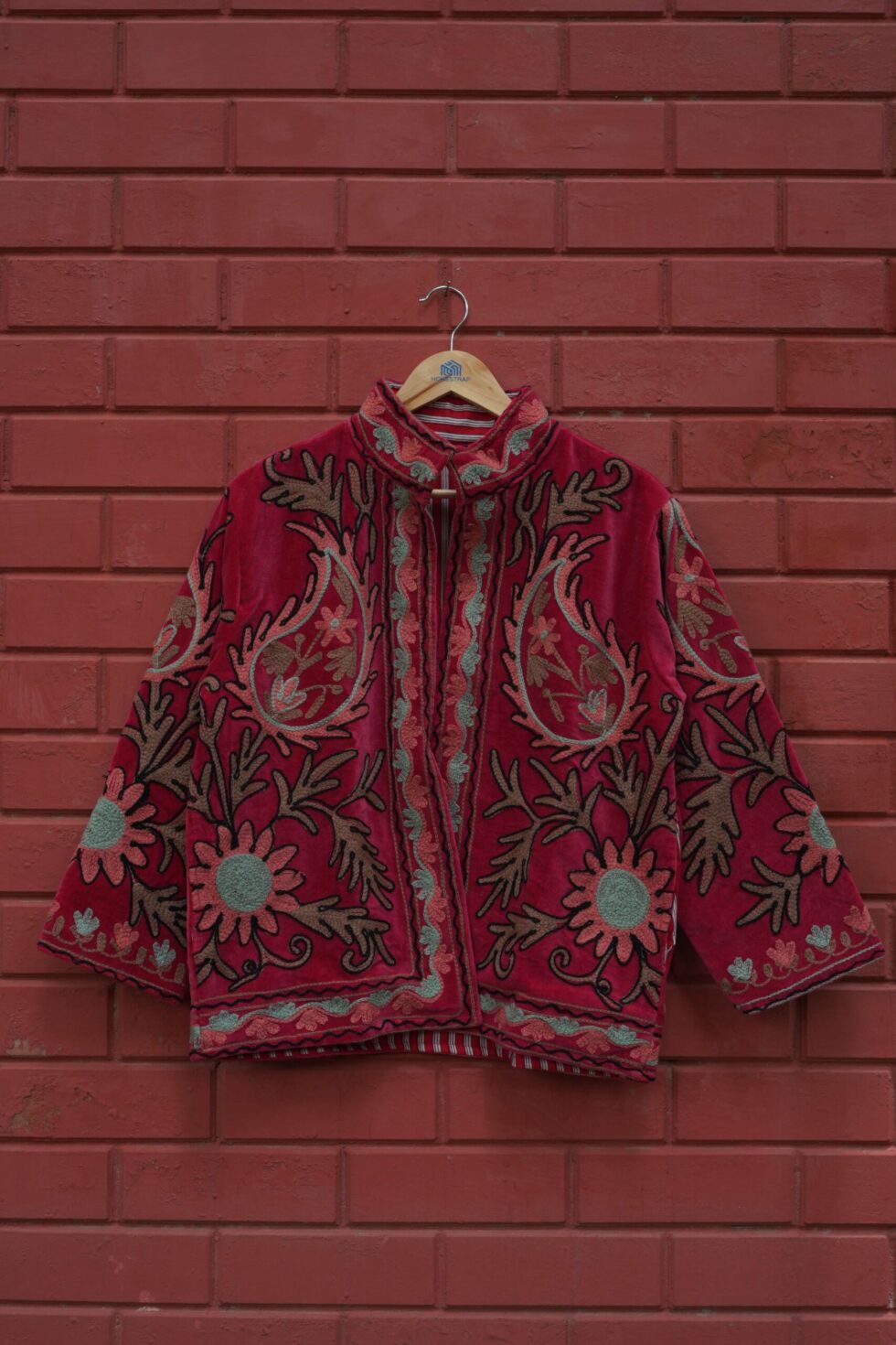 Luxurious velvet jacket featuring intricate Suzani embroidery. Perfect blend of elegance and tradition — ideal for festive and ethnic occasions.