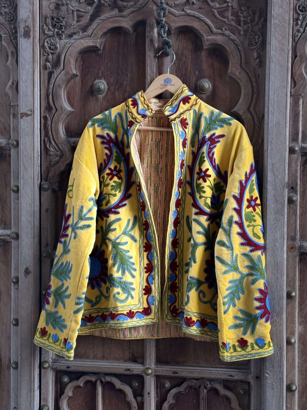 Luxurious velvet jacket featuring intricate Suzani embroidery. Perfect blend of elegance and tradition β€” ideal for festive and ethnic occasions.